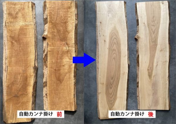 木材に自動カンナを掛けると、表面の木目がとってもキレイに現れます。
